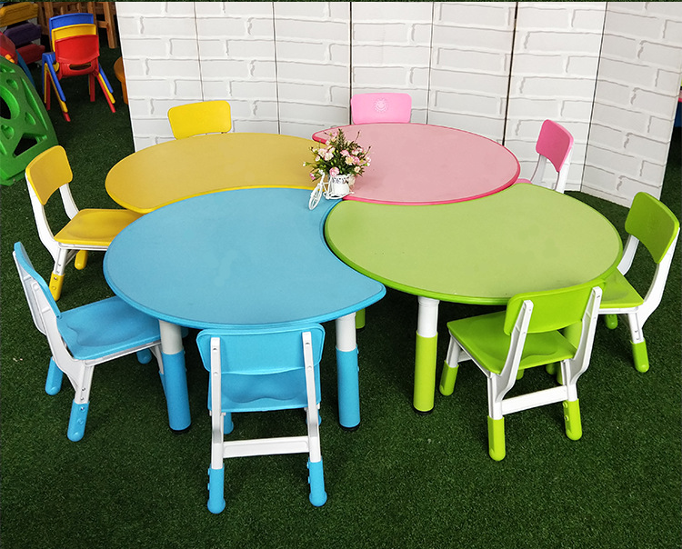 Adjustable kindergarten kids table and chairs