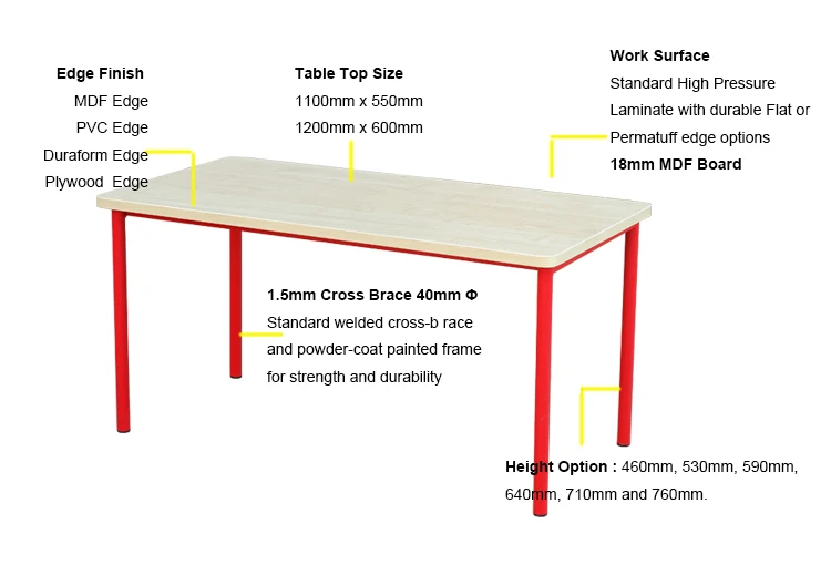 rectangular school furniture student table