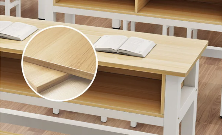 Our school desk and chairare made of sturdy and durable materials, with strong load-bearing and good stability, which can meet the various learning requirements of students in the classroom. The smooth surface is easy to write and draw, and the corners of the desks are designed with circular arcs to prevent accidental collisions and provide excellent safety protection for students. At the same time, we choose environmentally friendly materials to ensure that children can use them with peace of mind.